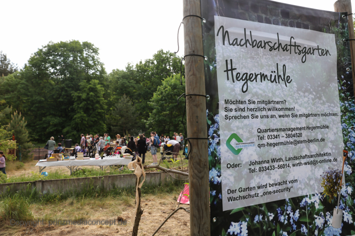 Im Nachbarschaftsgarten Hegermühle, am Eingang des S-Bahnhofs Hegermühle