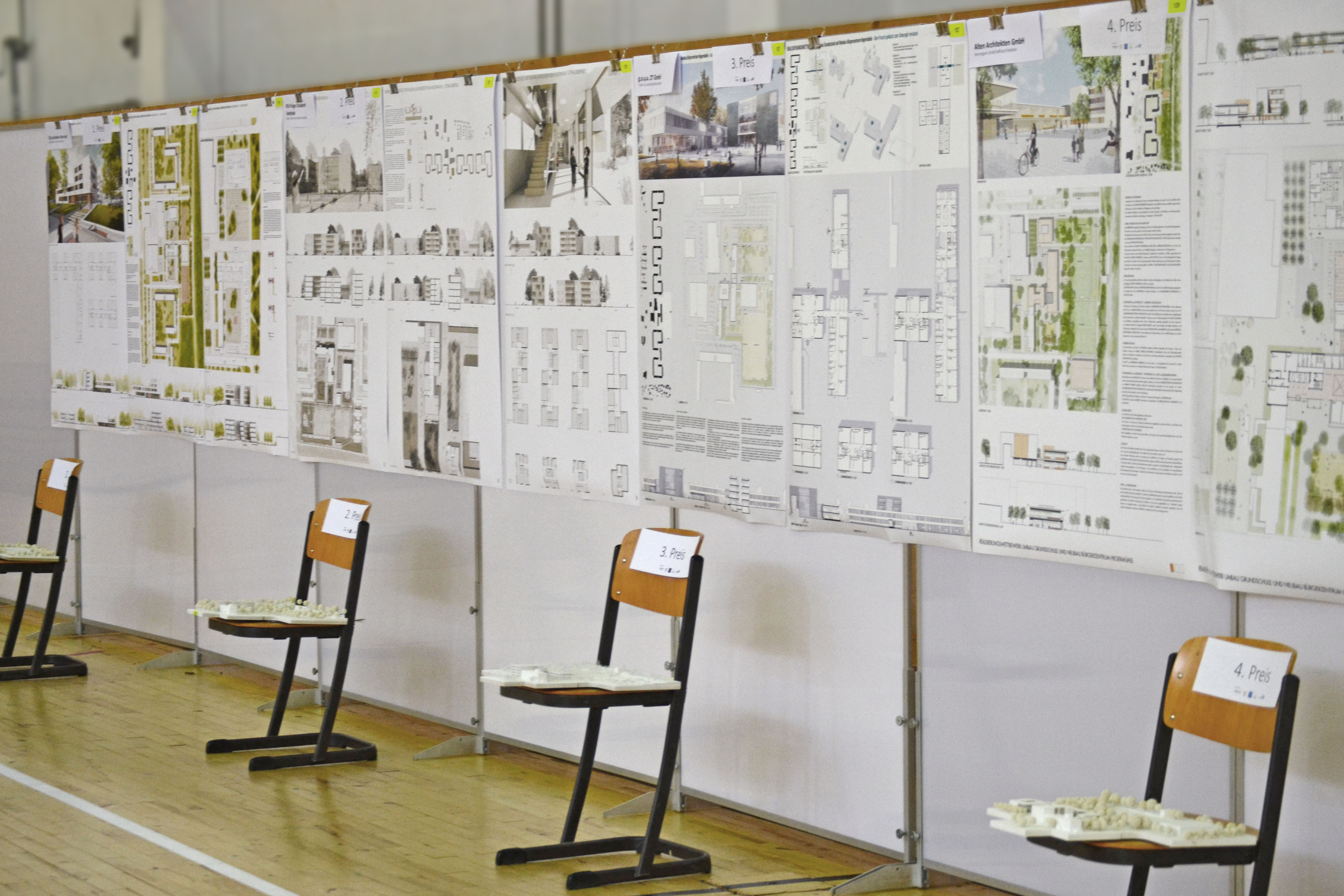 Die Siegerentwürfe und auch alle anderen eingegangenen Entwürfe wurden zusammen mit den dazugehörigen Modellen öffentlich in der Turnhalle der Grundschule Am Annatal in Hegermühle und im Stadtmuseum Strausberg ausgestellt. Den Abschluss der Ausstellung im Wohngebiet bildete eine offene Quartiersratssitzung am 27.08.2018, auf der Bewohner*innen und anderen Interessierten die Wettbewerbsergebnisse und die Entscheidung des Preisgerichts erläutert wurden.
