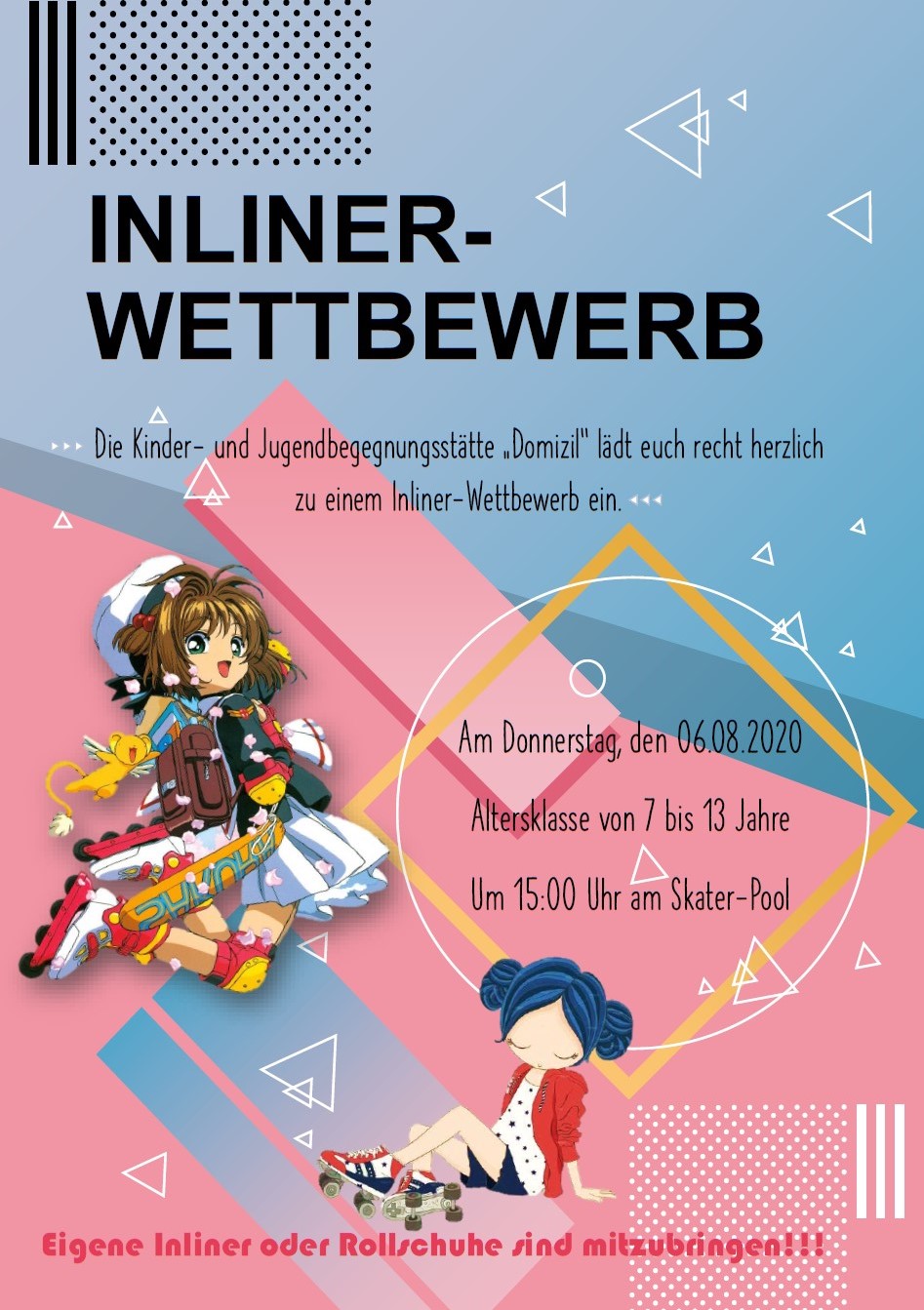 Die Kinder- und Jugendbegegnungsstätte „Domizil“ lädt herzlich zu einem Inliner-Wettbewerb ein.