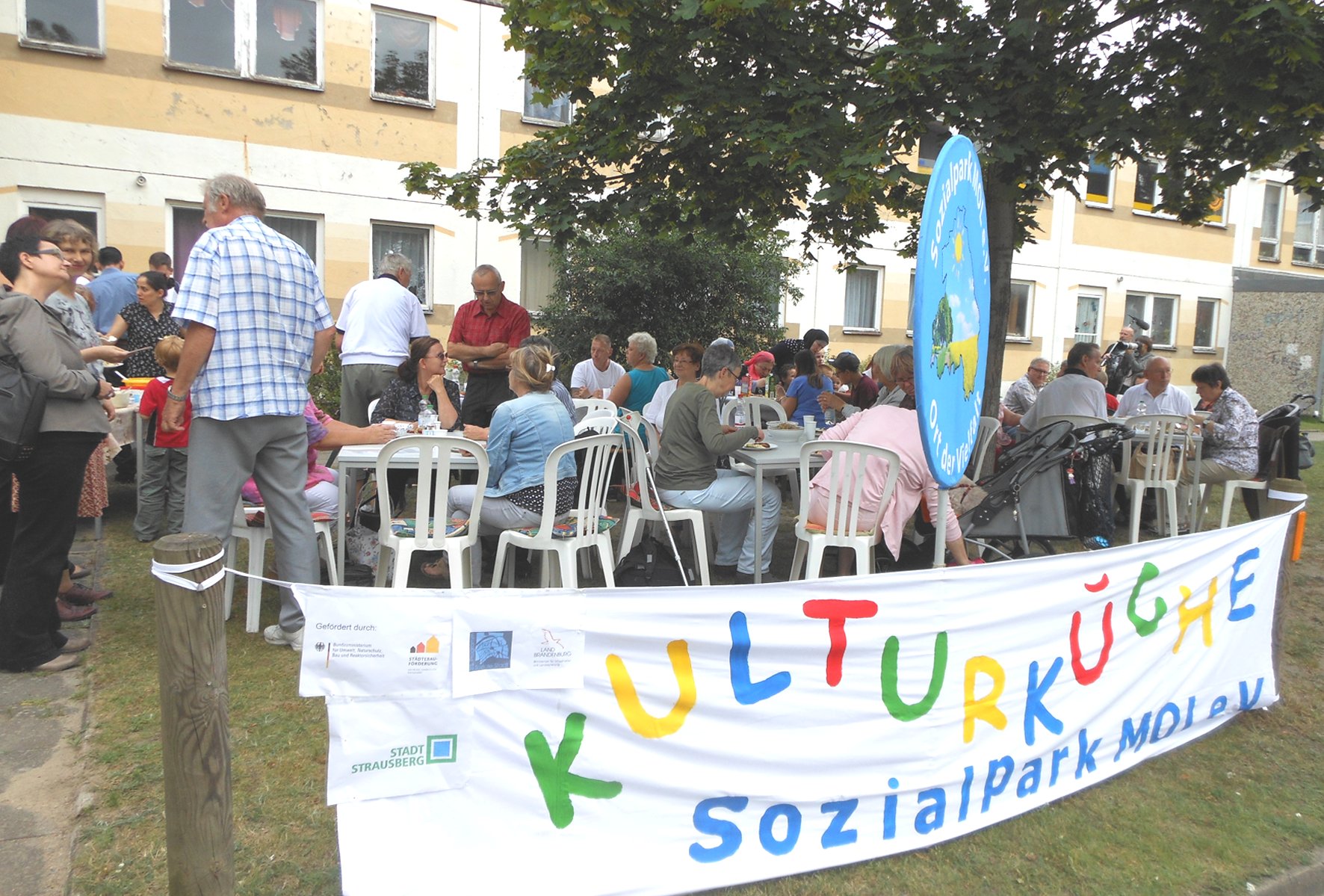 Regelmäßige informieren Flyer und Plakat im Wohngebiet und in Strausberg zum interkulturellen, kulinarischen Austausch.