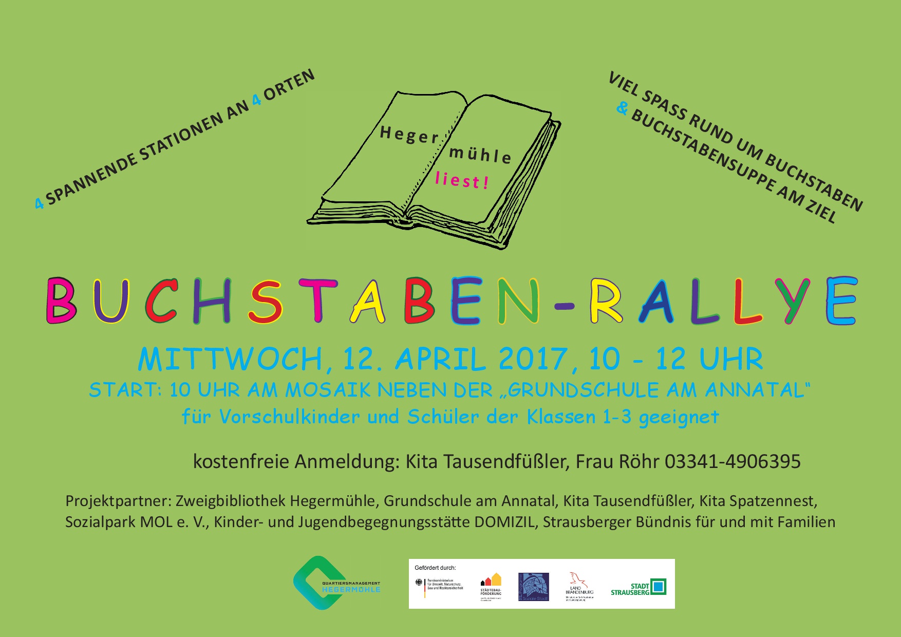 Projektpartner: Zweigbibliothek Hegermühle, Grundschule am Annatal, Kita Tausenfüßler, Kita Spatzennest, Sozialpark MOL e.V., Kinder- und Jugendbegegnungsstätte DOMIZIL, Strausberger Bündnis für und mit Familien